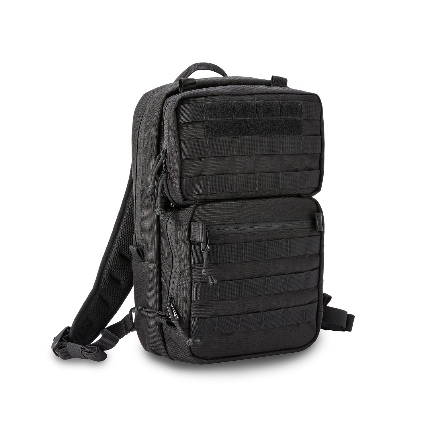 Featuring a 4x6 Molle on the front and back panel. The front panel also includes two rolls of velcro strips for patches or name tag. Inside are two large pockets for bulky items and two small elastic pockets for compact items. Elastic webbing in different width allowing you to secure gears in various sizes.