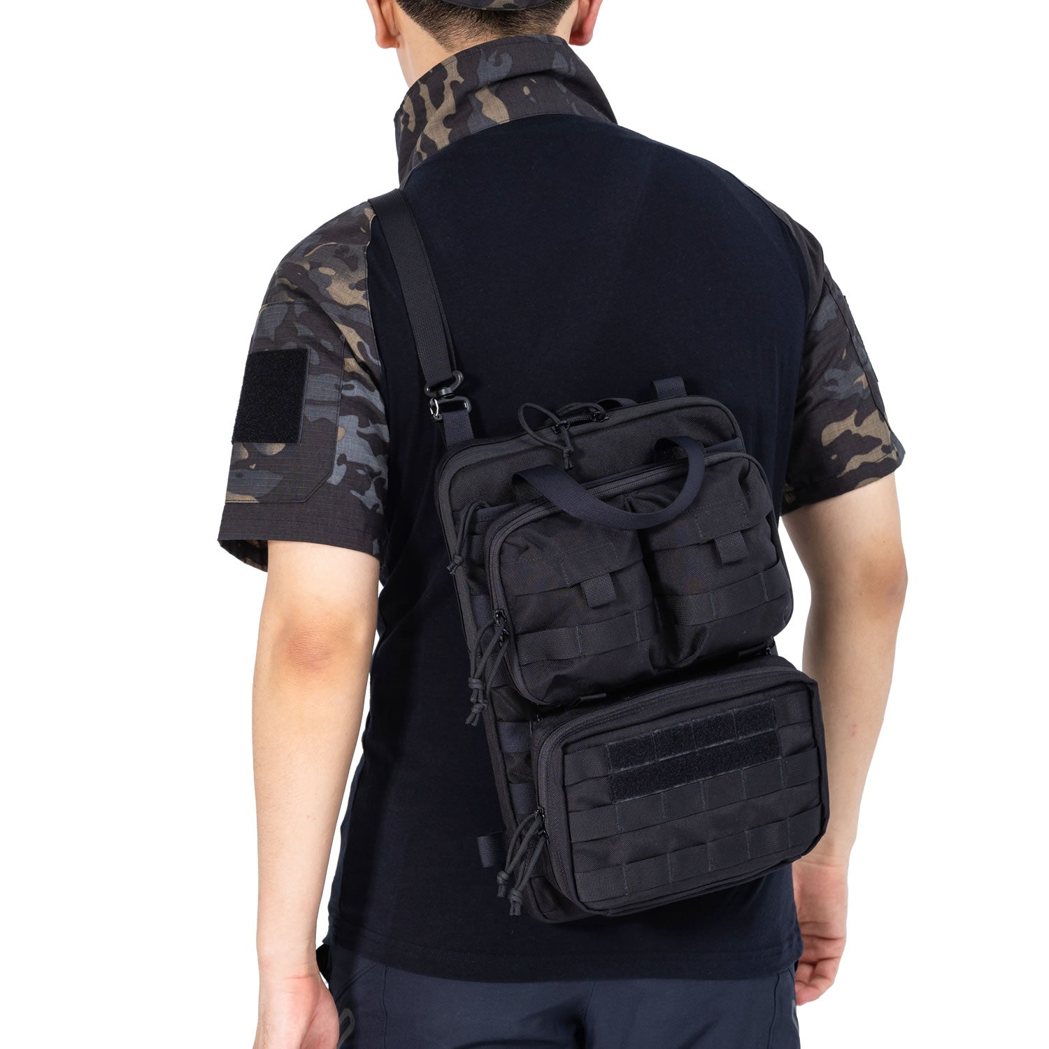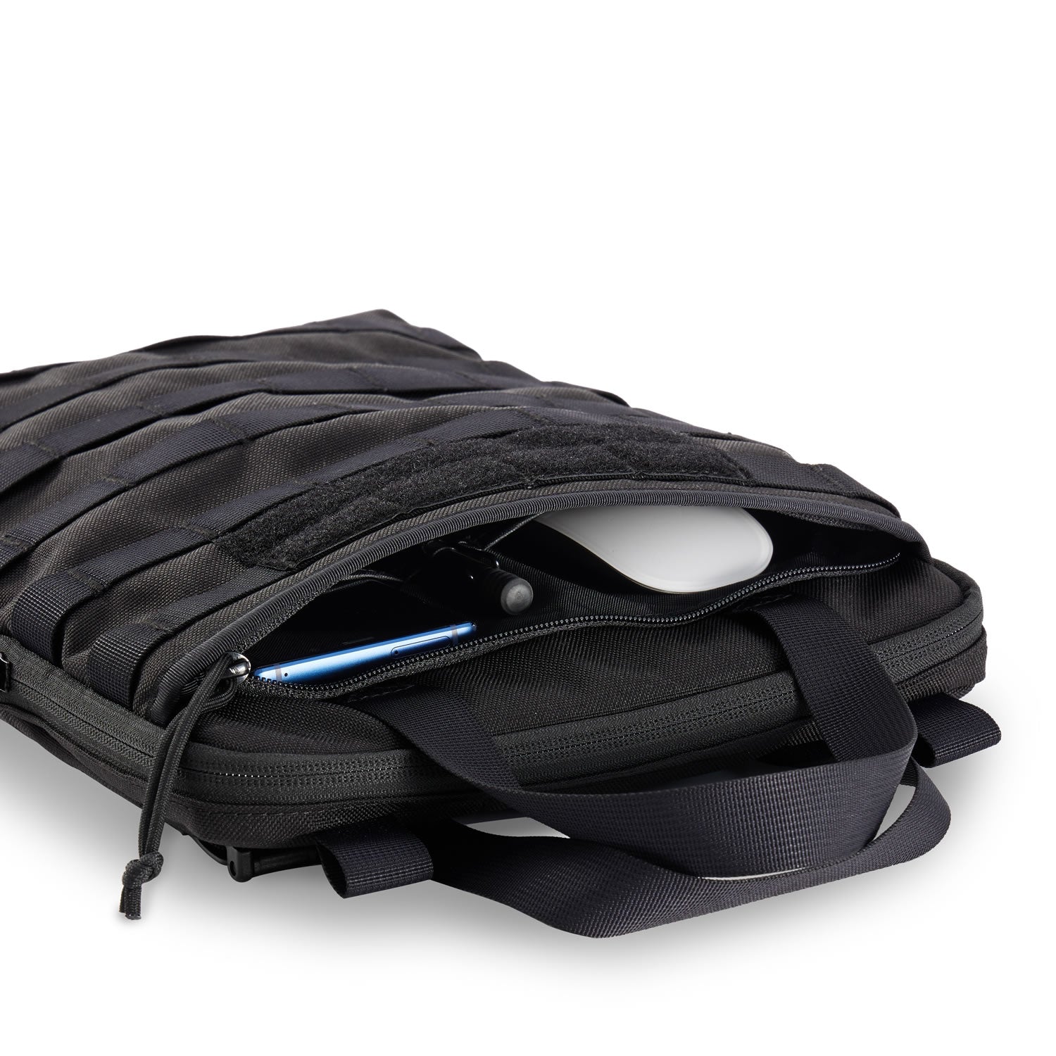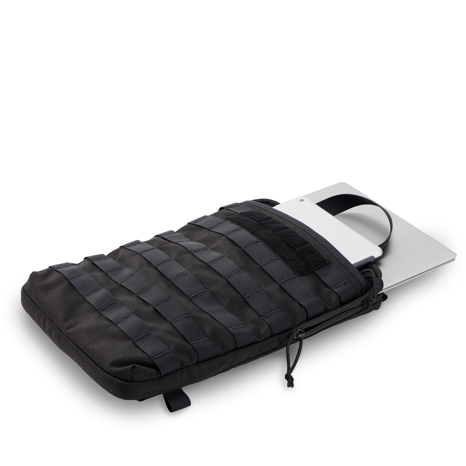 Designed for those who demand more from their everyday gear, this tactical laptop sleeve offers exceptional protection and style. Constructed from durable 1000D nylon, the sleeve boasts a sleek black design inspired by the practicality and resilience of military equipment. Featuring a 6x6 MOLLE panel on the front, it allows users to attach additional pouches or accessories for enhanced functionality and customization.
